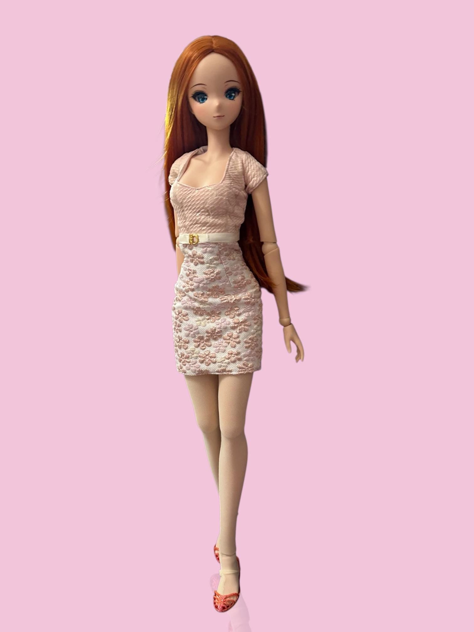 Elevate your doll's wardrobe with this stunning handmade pink pencil dress - a timeless piece that blends modern chic with romantic flair. Designed to fit smartdoll or similar size fashion dolls, this dress features a fitted bodice and a delicate floral lace overlay on the skirt for a refined, feminine touch.