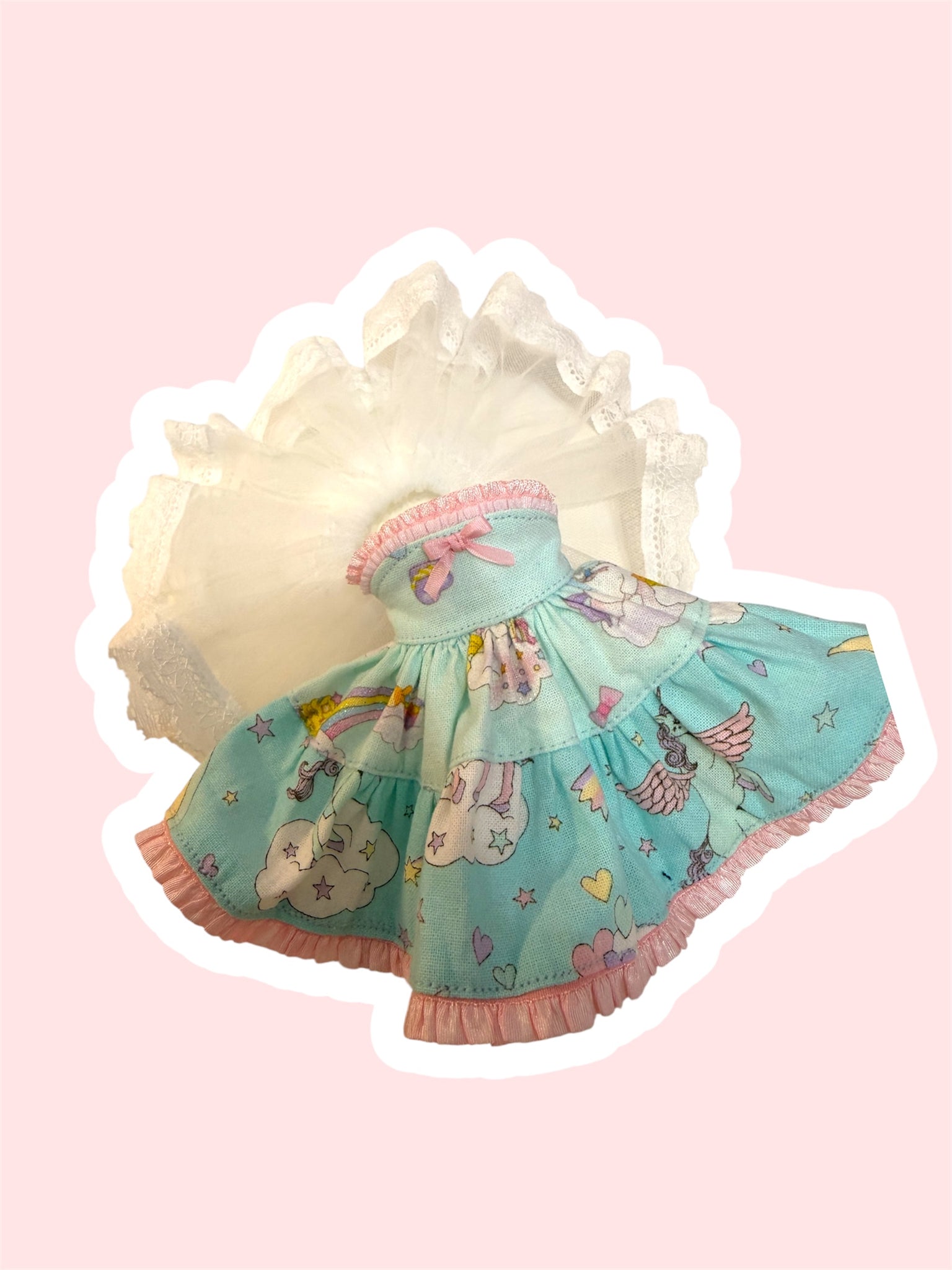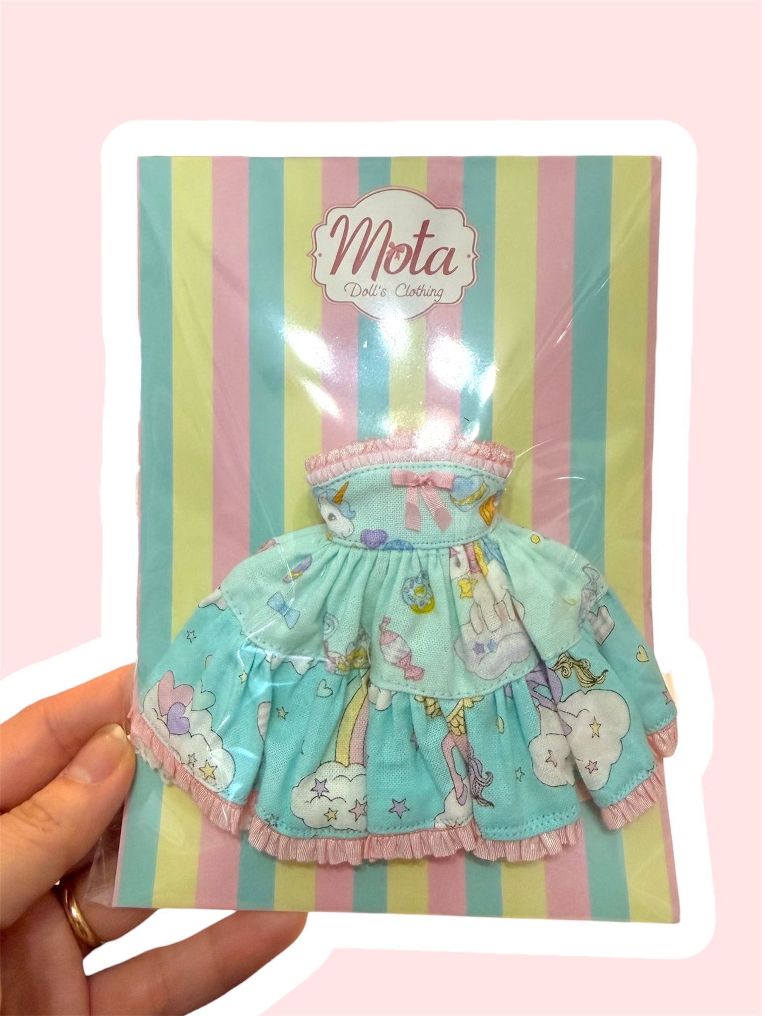 Kikipop size dress with details of pink silk ribbon, the set included 1 dress and 1 petticoat.